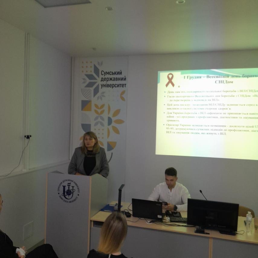 Під час заходу Лариса ПАНАСЕНКО, заступник медичного директора з питань профілактики і боротьби зі СНІДом, лікар-інфекціоніст відділення профілактики і боротьби зі СНІДом КНП СОР «Обласний клінічний медичний центр соціально небезпечних захворювань» надала інформацію про епідемічну ситуацію з ВІЛ-інфекції/СНІДу у Сумській області та що роботи задля того, щоб не інфікуватися ВІЛ. Зокрема, були висвітлені та обговорені питання медикаментозної доконтактної та постконтактної профілактики ВІЛ.